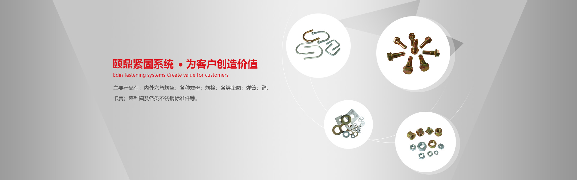 蘇州頤鼎緊固系統有限公司是一家緊固件的專業廠家,公司生產技術實力雄厚,工藝先進,檢測設施齊全。公司在不斷改革創新的過程中,總結和積累經驗,無論在生產上,還是管理上,都嚴把質量關,建立了完善的質量管理制度和產品內控標準;在服務上,我們有著全程跟蹤的服務體系。為客戶提供高質量的產品和便捷高效的服務。我公司產品按國家GB型、德國DIN、英國BS、美國ANSI、日本JIS、國際ISO標準生產,主要產品有:內外六角螺絲;各種螺母;螺栓;各類墊圈;彈簧;銷、卡簧;密封圈及各類...